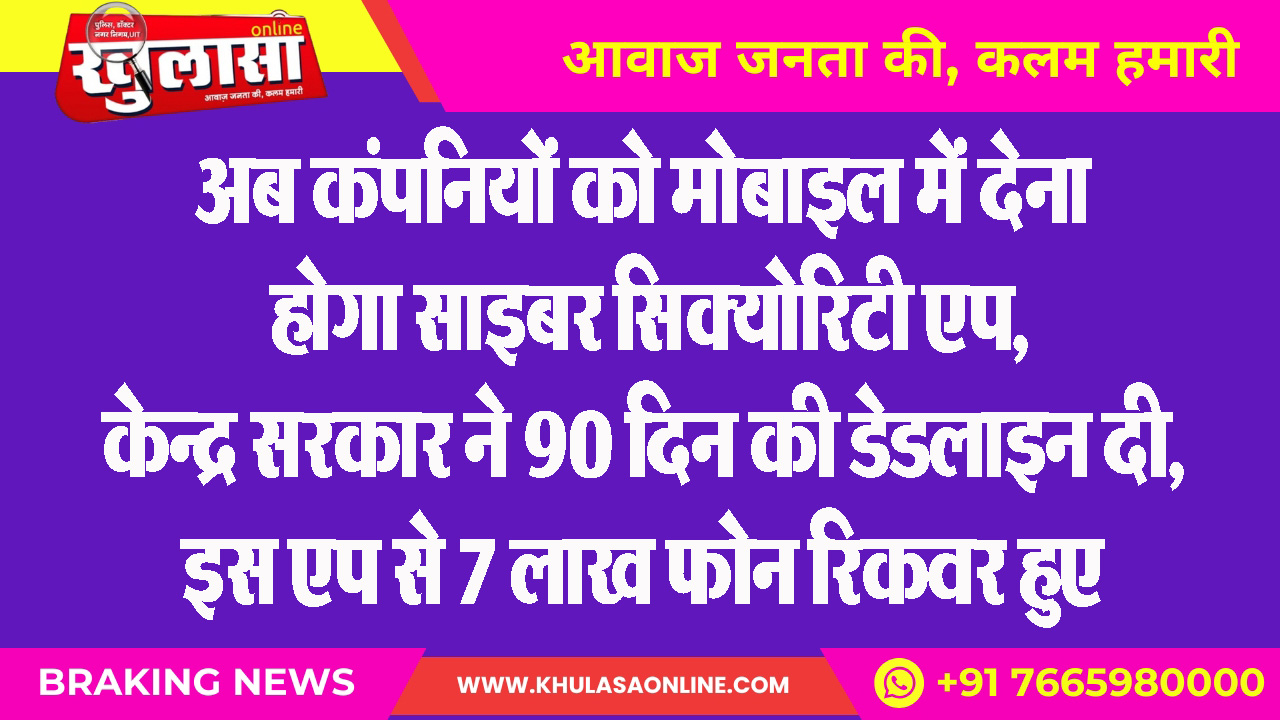 अब कंपनियों को मोबाइल में देना होगा साइबर सिक्योरिटी एप, केन्द्र सरकार ने 90 दिन की डेडलाइन दी, इस एप से 7 लाख फोन रिकवर हुए