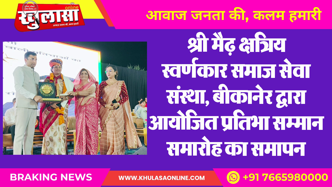 श्री मैढ़ क्षत्रिय स्वर्णकार समाज सेवा संस्था, बीकानेर द्वारा आयोजित प्रतिभा सम्मान समारोह का समापन