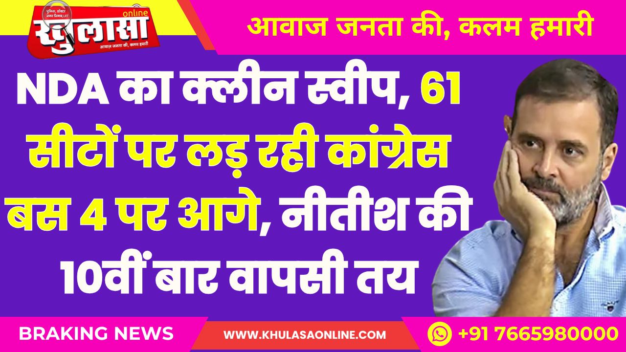 Bihar Election Result 2025: NDA का क्लीन स्वीप, 61 सीटों पर लड़ रही कांग्रेस बस 4 पर आगे, नीतीश की 10वीं बार वापसी तय