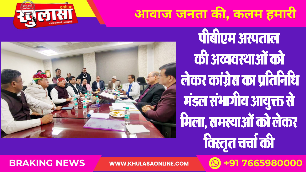 पीबीएम अस्पताल की अव्यवस्थाओं को लेकर कांग्रेस का प्रतिनिधि मंडल संभागीय आयुक्त से मिला, समस्याओं को लेकर विस्तृत चर्चा की