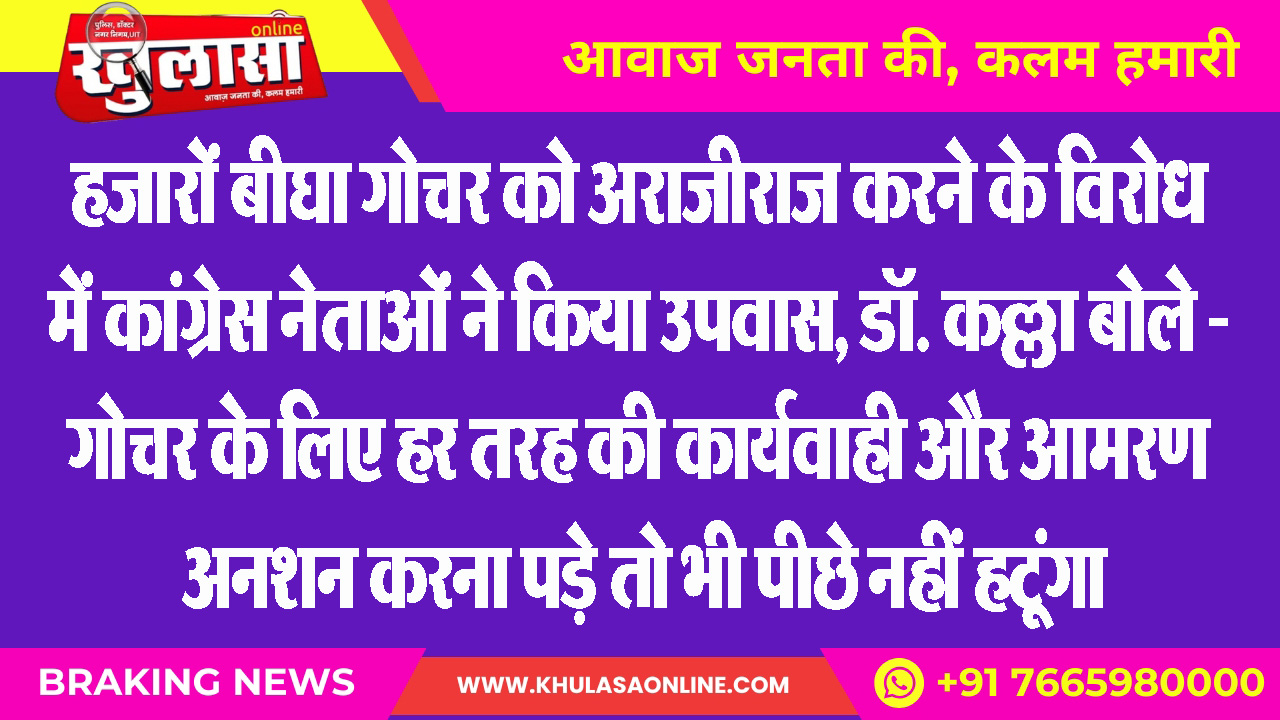 हजारों बीघा गोचर को अराजीराज करने के विरोध में कांग्रेस नेताओं ने किया उपवास, डॉ. कल्ला बोले – गोचर के लिए हर तरह की कार्यवाही और आमरण अनशन करना पड़े तो भी पीछे नहीं हटूंगा