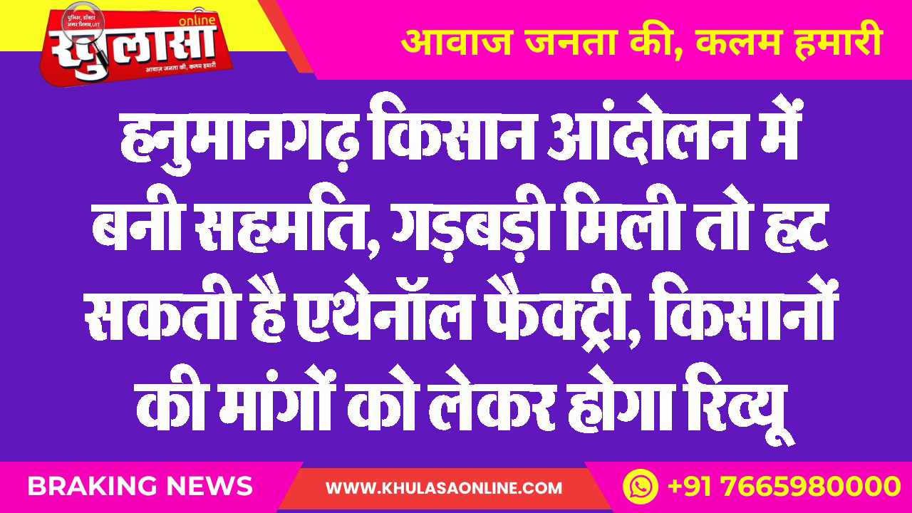हनुमानगढ़ किसान आंदोलन में बनी सहमति, गड़बड़ी मिली तो हट सकती है एथेनॉल फैक्ट्री, किसानों की मांगों को लेकर होगा रिव्यू