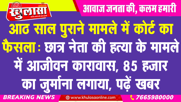आठ साल पुराने मामले में कोर्ट का फैसला : छात्र नेता की हत्या के मामले में आजीवन कारावास, 85 हजार का जुर्माना लगाया