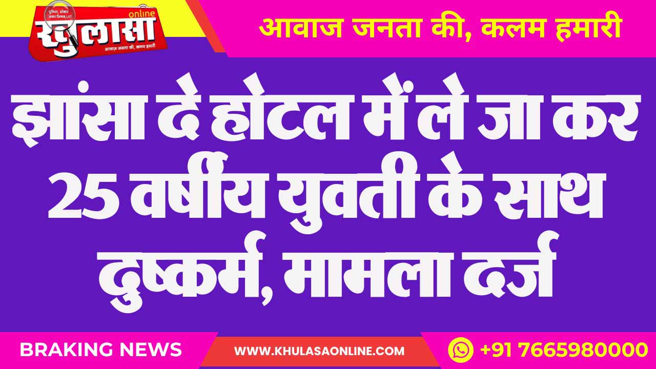 झांसा दे होटल में ले जा कर 25 वर्षीय युवती के साथ दुष्कर्म, मामला दर्ज