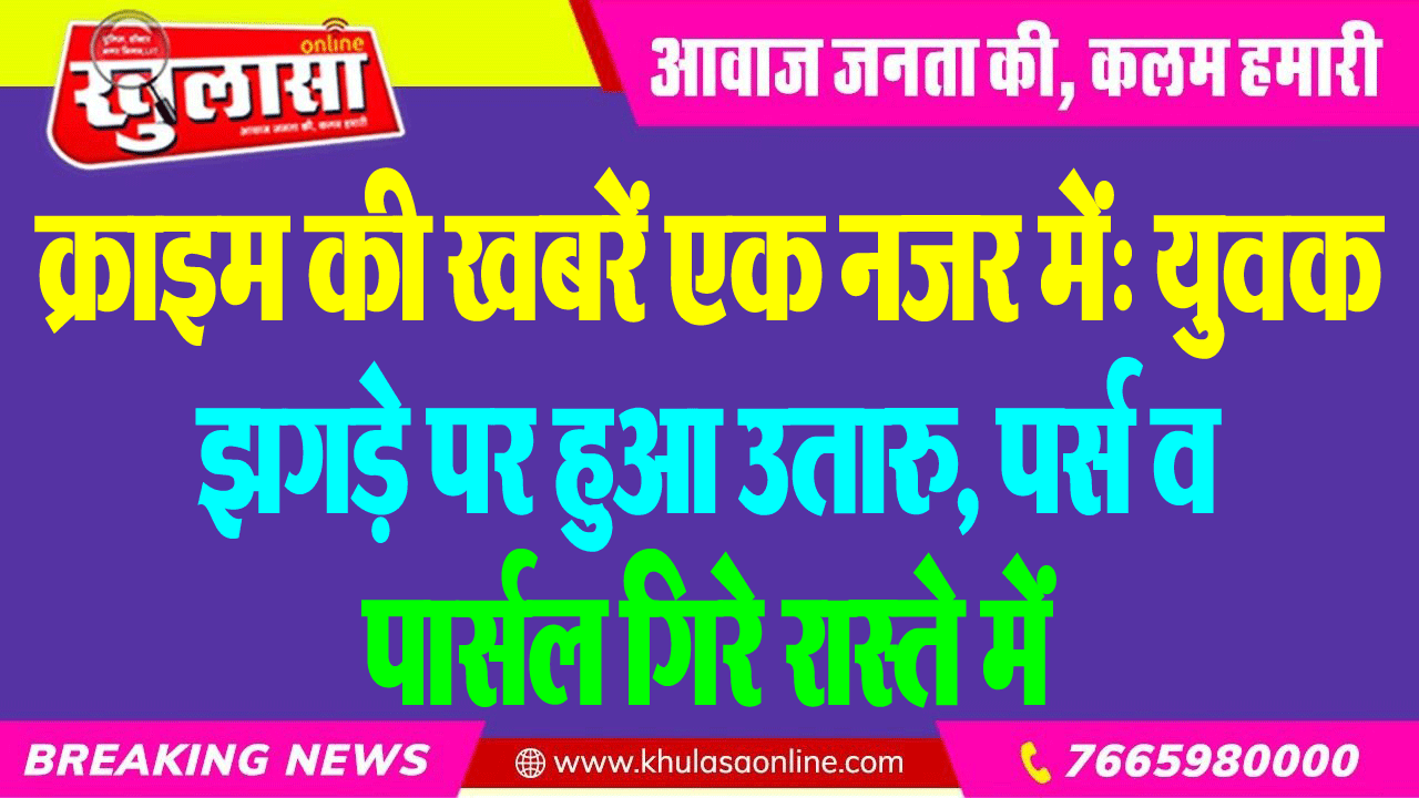 क्राइम की खबरें एक नजर में: युवक झगड़े पर हुआ उतारु, पर्स व पार्सल गिरे रास्ते में