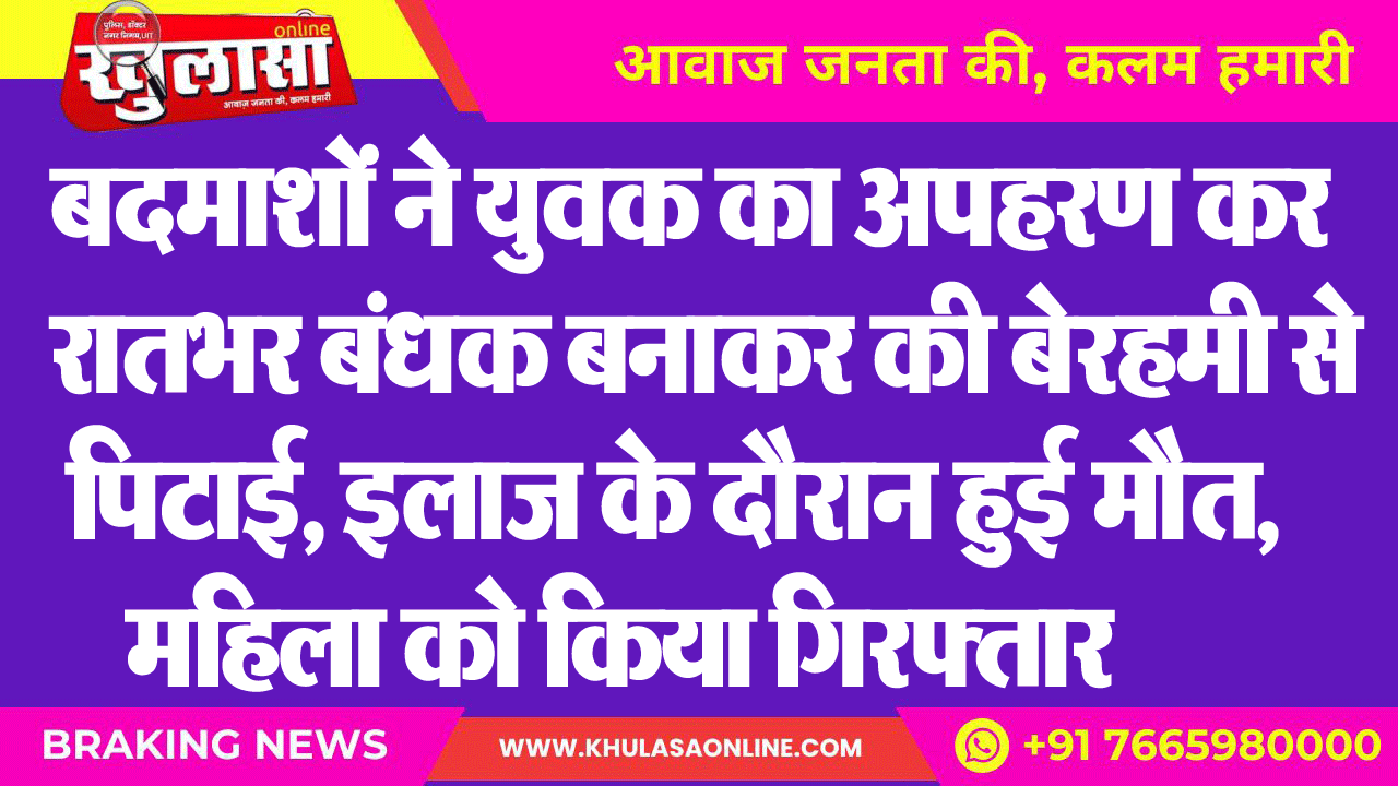 बदमाशों ने युवक का अपहरण कर रातभर बंधक बनाकर की बेरहमी से पिटाई, इलाज के दौरान हुई मौत, महिला को किया गिरफ्तार