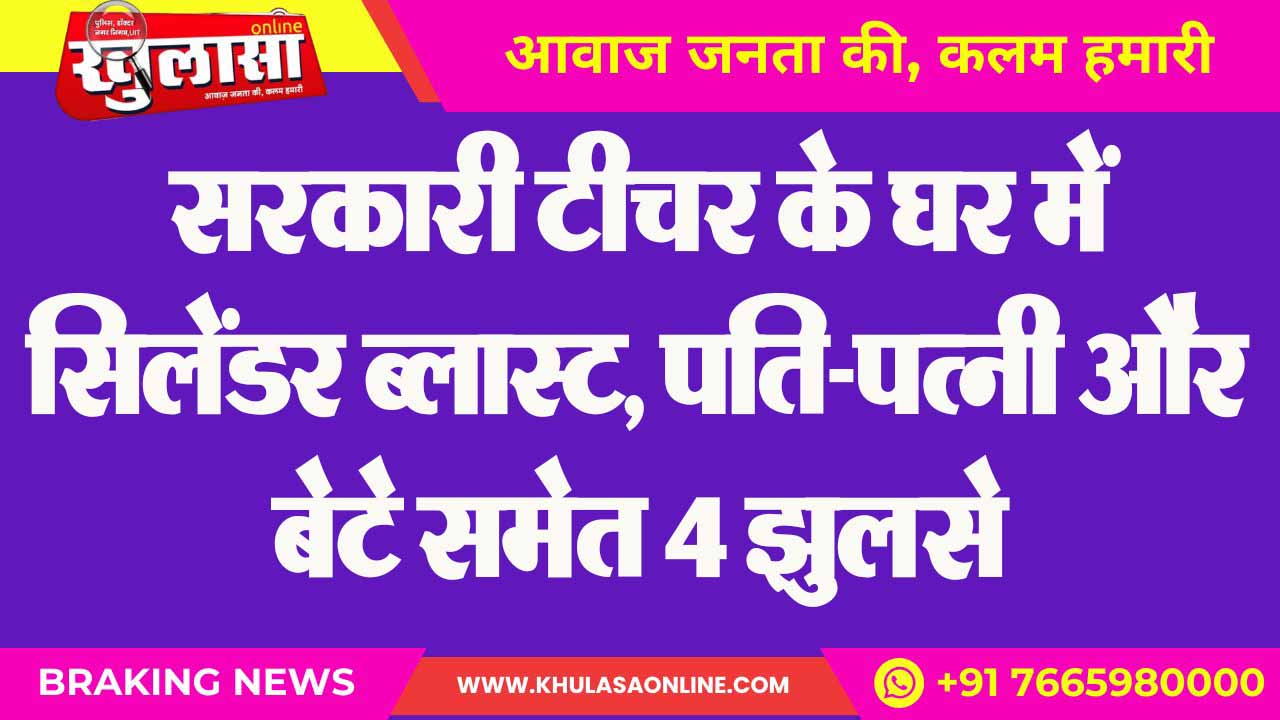 सरकारी टीचर के घर में सिलेंडर ब्लास्ट, पति-पत्नी और बेटे समेत 4 झुलसे