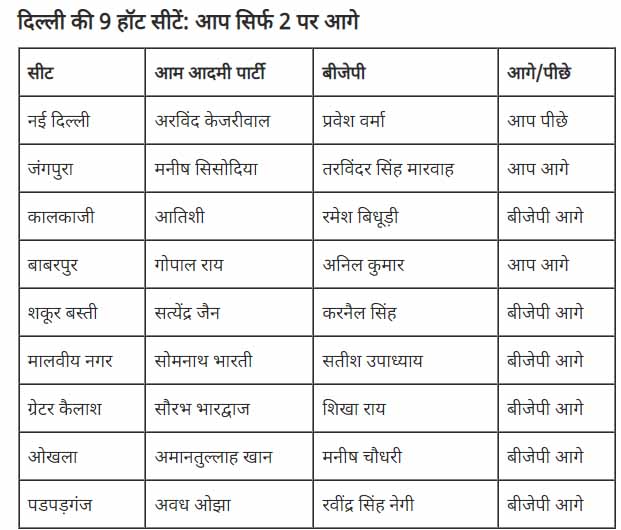 -सौरभ भारद्वाज ग्रेटर कैलाश सीट से 2721 वोटों से भाजपा की शिखा राय से पीछे चल रहे हैं।