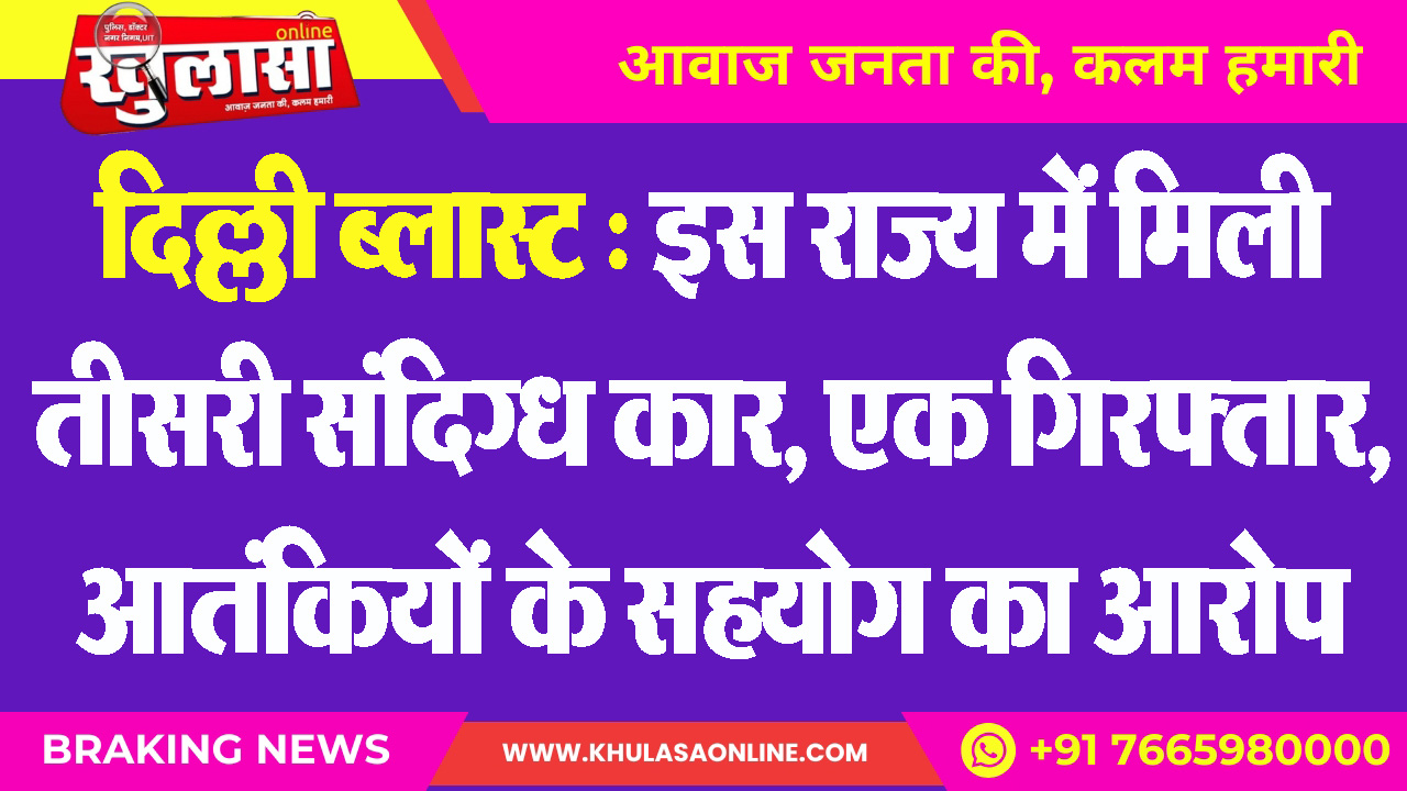 दिल्ली ब्लास्ट : इस राज्य में मिली तीसरी संदिग्ध कार, एक गिरफ्तार, आतंकियों के सहयोग का आरोप