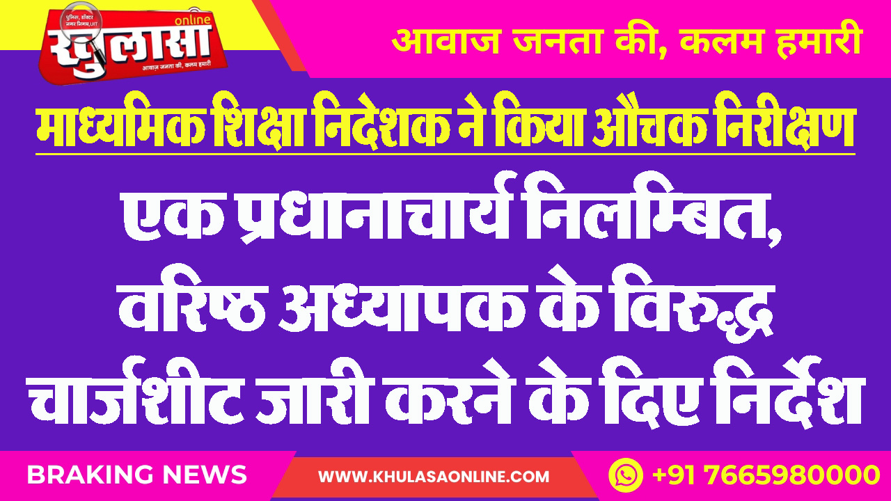माध्यमिक शिक्षा निदेशक ने किया औचक निरीक्षण : एक प्रधानाचार्य निलम्बित, वरिष्ठ अध्यापक के विरुद्ध चार्जशीट जारी करने के दिए निर्देश