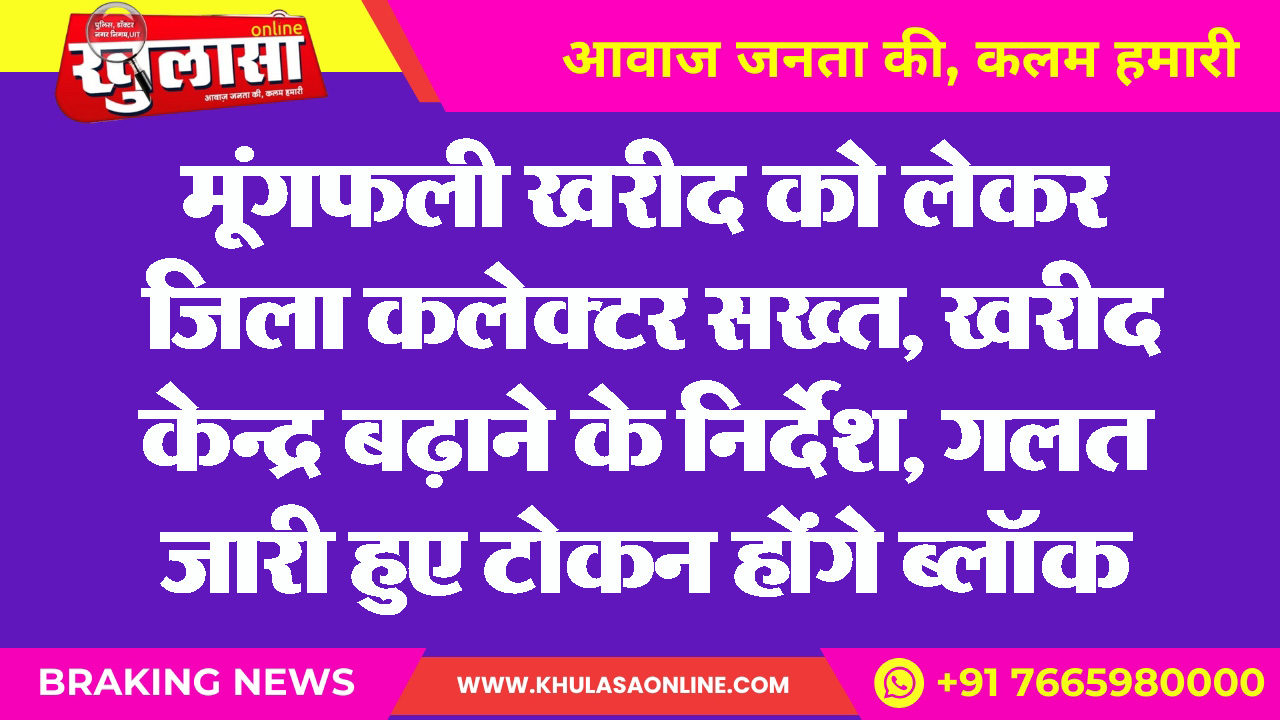 मूंगफली खरीद को लेकर जिला कलेक्टर सख्त, खरीद केन्द्र बढ़ाने के निर्देश, गलत जारी हुए टोकन होंगे ब्लॉक