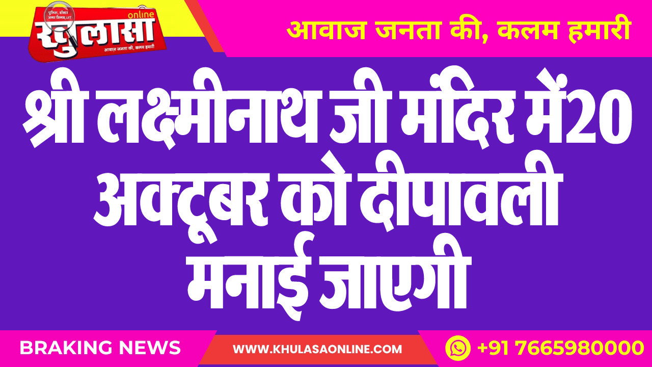 श्री लक्ष्मीनाथ जी मंदिर में दिनांक 20 अक्टूबर को दीपावली मनाई जाएगी