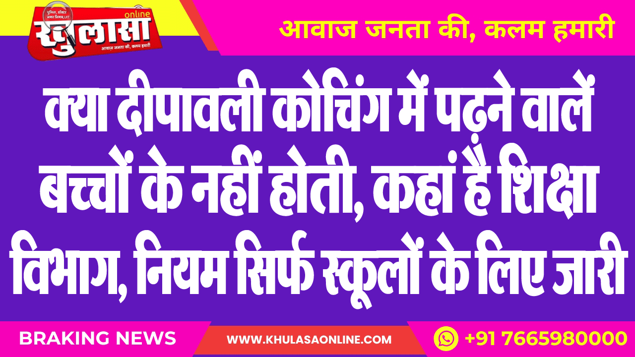 क्या दीपावली कोचिंग में पढऩे वालों बच्चों के नहीं होती, कहां है शिक्षा विभाग, नियम सिर्फ स्कूलों के लिए जारी