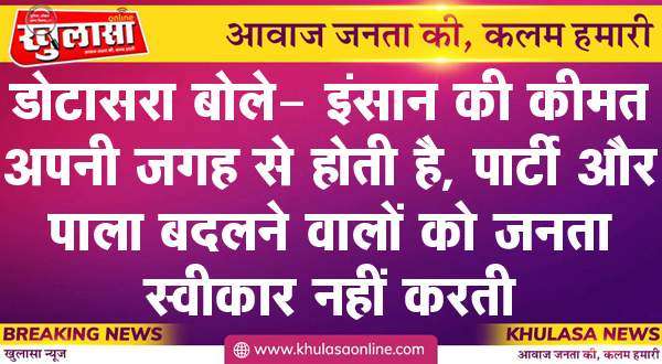 डोटासरा बोले- इंसान की कीमत अपनी जगह से होती है, पार्टी और पाला बदलने वालों को जनता स्वीकार नहीं करती