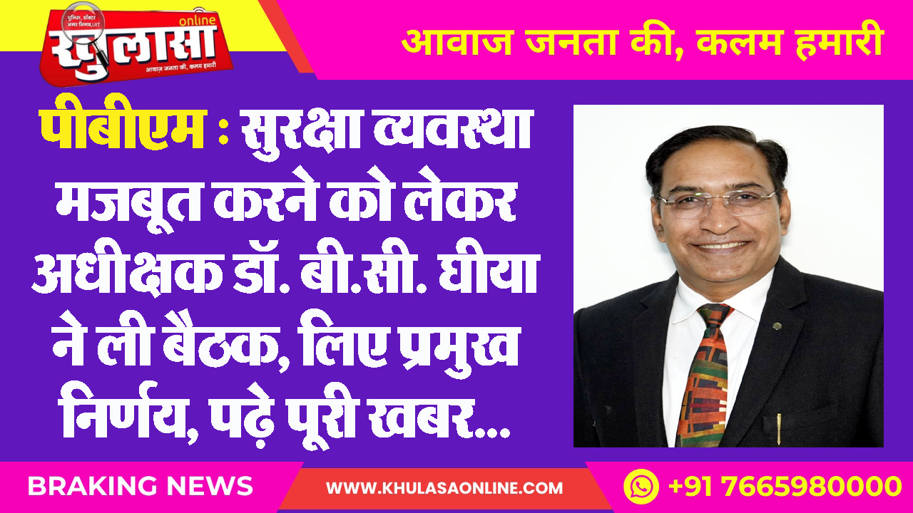 पीबीएम : सुरक्षा व्यवस्था मजबूत करने को लेकर अधीक्षक डॉ. बी.सी. घीया ने ली बैठक, लिए प्रमुख निर्णय, पढ़े पूरी खबर…