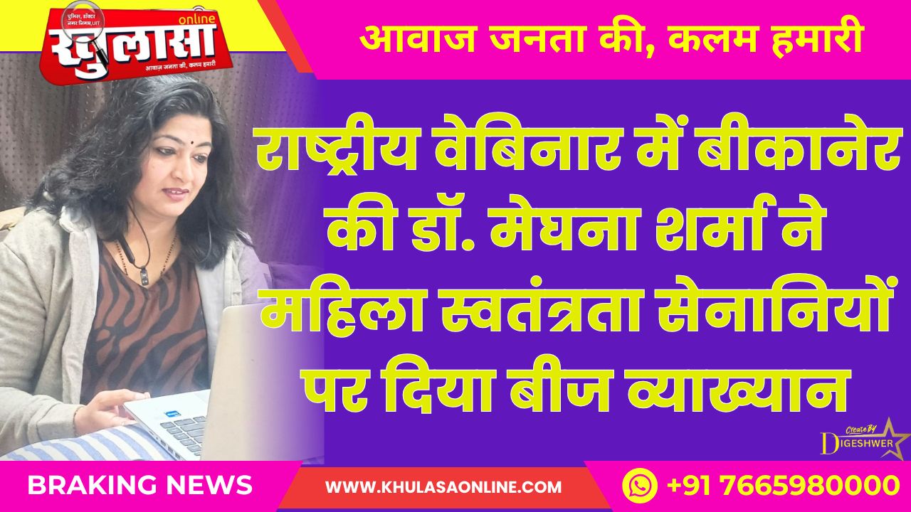 राष्ट्रीय वेबिनार में बीकानेर की डॉ. मेघना शर्मा ने महिला स्वतंत्रता सेनानियों पर दिया बीज व्याख्यान