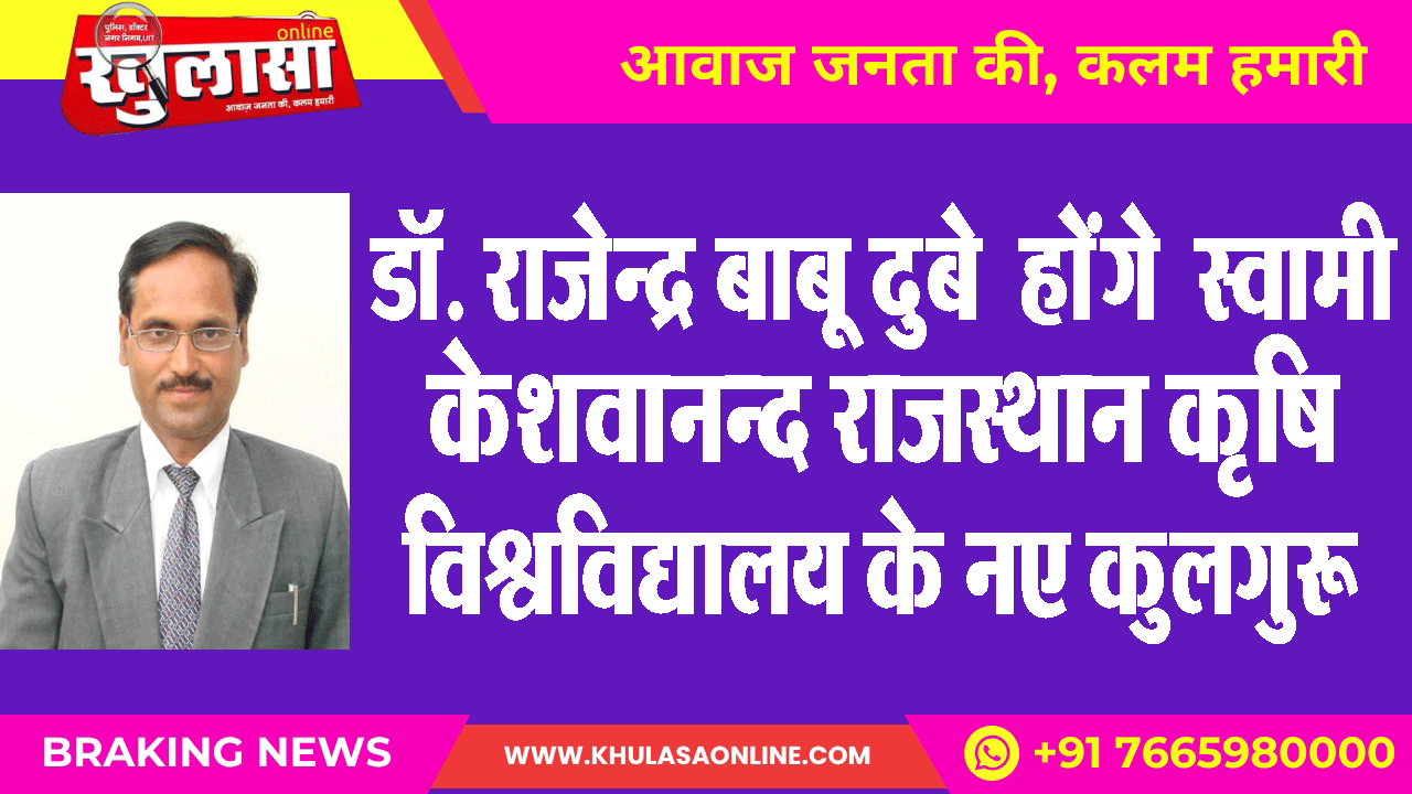 डॉ. राजेन्द्र बाबू दुबे होंगे स्वामी केशवानन्द राजस्थान कृषि विश्वविद्यालय के नए कुलगुरू