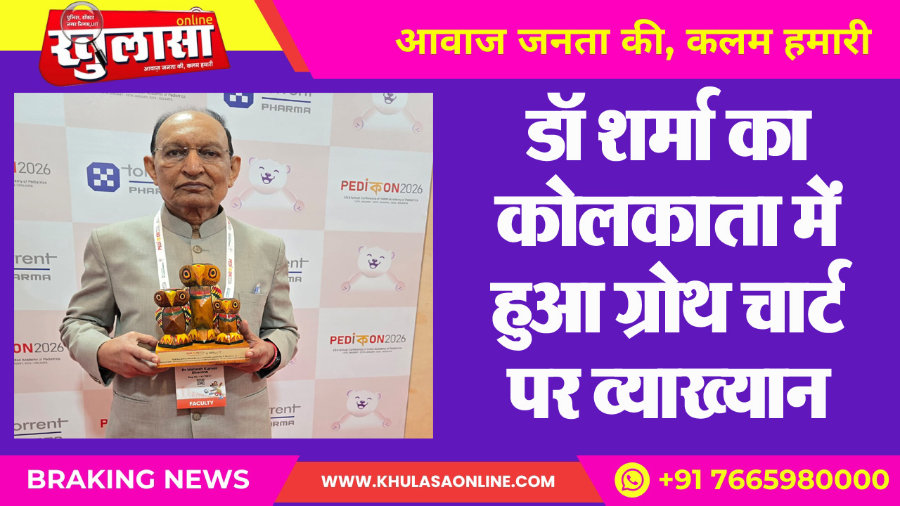बीकानेर/ बीकानेर के शिशु रोग विशेषज्ञ डॉक्टर महेश शर्मा का शनिवार को कोलकाता में व्याख्यान हुआ एकेडमी ऑफ पीडियाट्रिक्स में आयोजित राष्ट्रीय स्तर की पेडिकोन 26 कार्यशाला में डॉक्टर शर्मा ने बच्चों के शारीरिक विकास में किस तरह की आहार का उपयोग करना चाहिए इस पर ग्रोथ चार्ट व्याख्यान के माध्यम से जानकारी प्रदानकी साथ ही उन्होंने असंतुलित आहार और फास्ट फूड के सेवन से होने वाले नुकसान के बारे में भी तथ्यात्मक जानकारी देते हुए अभिभावकों को सचेत किया कि वह बच्चों के खान-पान का विशेष ध्यान रखें इस समय केवल वर्तमान में बल्कि भविष्य में भी उनके स्वास्थ्य पर बुरा असर पड़ता है डॉ शर्मा ने अभिभावकों से यह भी अपील की कि वे बच्चों को योग प्राणायाम और दैनिक दिनचर्या में घूमने आदि पर भी ध्यान देना चाहिए व्याख्यान के बाद डॉक्टर शर्मा कास्मृति चिन्ह देकर सम्मान किया गया राष्ट्रीय स्तर के इस सम्मेलन में विभिन्न देशों से 10000 से अधिक शिशुरोग विशेषज्ञ चिकित्सक भागीदारी निभा रहे हैं।