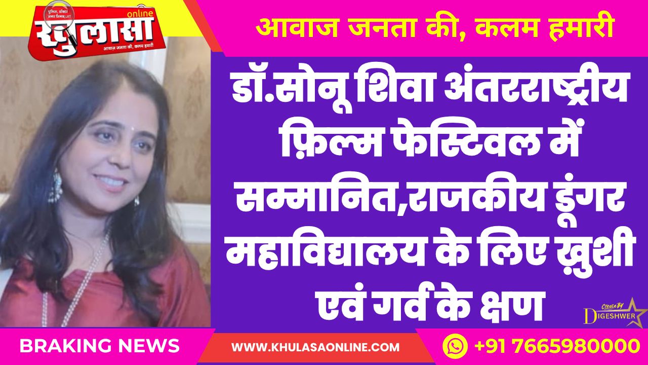 डॉ.सोनू शिवा अंतरराष्ट्रीय फ़िल्म फेस्टिवल में सम्मानित , राजकीय डूंगर महाविद्यालय के लिए ख़ुशी एवं गर्व के क्षण