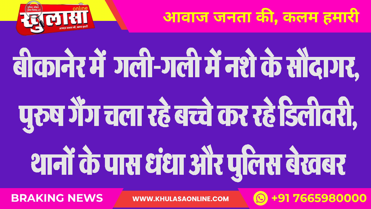 बीकानेर में गली-गली में नशे के सौदागर, पुरुष गैंग चला रहे बच्चे कर रहे डिलीवरी, थानों के पास धंधा और पुलिस बेखबर