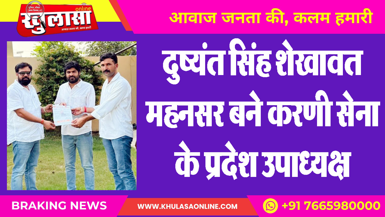 दुष्यंत सिंह शेखावत महनसर बने करणी सेना के प्रदेश उपाध्यक्ष
