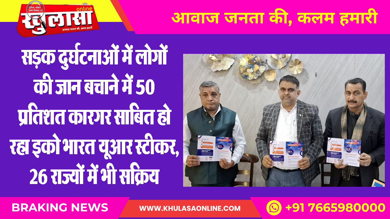 सड़क दुर्घटनाओं में लोगों की जान बचाने में 50 प्रतिशत कारगर साबित हो रहा इको भारत क्यूआर स्टीकर, 26 राज्यों में भी सक्रिय