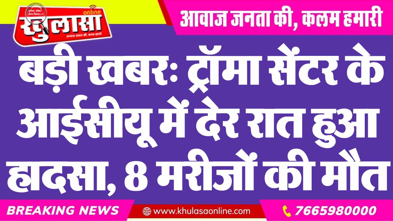 बड़ी खबर: ट्रॉमा सेंटर के आईसीयू में देर रात हुआ हादसा, 8 मरीजों की मौत