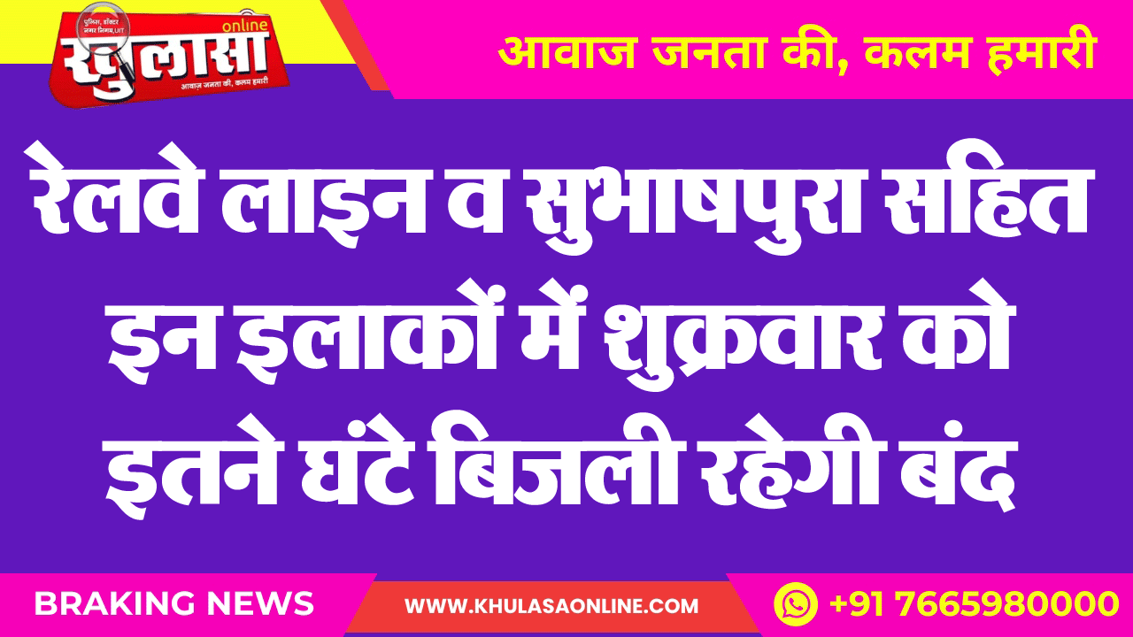 रेलवे लाइन व सुभाषपुरा सहित इन इलाकों में शुक्रवार को इतने घंटे बिजली रहेगी बंद