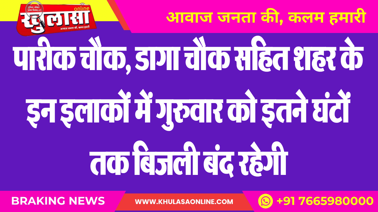 पारीक चौक, डागा चौक सहित शहर के इन इलाकों में गुरुवार को इतने घंटों तक बिजली बंद रहेगी