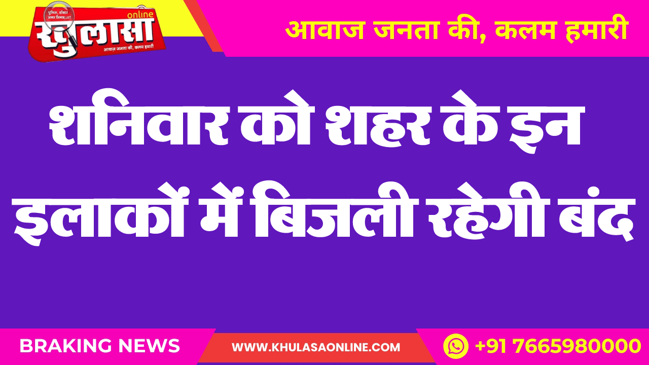 शनिवार को शहर के इन इलाकों में बिजली रहेगी बंद