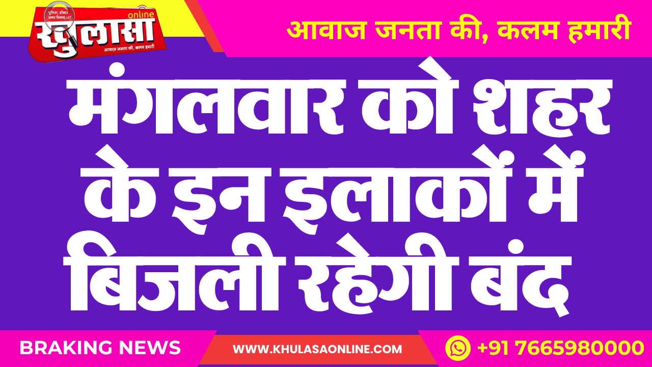 मंगलवार को शहर के इन इलाकों में बिजली रहेगी बंद