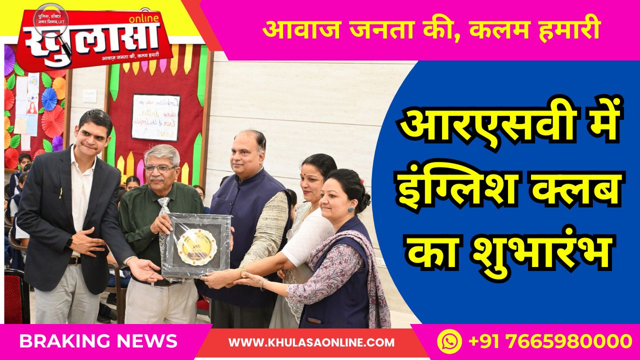 खुलासा बीकानेर।  जय नारायण व्यास कॉलोनी स्थित आरएसवी शिक्षा में नवाचार को सदैव प्राथमिकता देता रहा है सदैव बीकानेर के विद्यार्थियों के लिए नवीन से नवीन प्रयोग नवाचार के रूप में करता रहा है। इसी कड़ी में आज आरएसवी ऑडिटोरियम में 50 वर्ष से अधिक अंग्रेजी शिक्षण का अनुभव रखने वाले डॉक्टर एम आर खत्री प्रोफेसर इन इंग्लिश और डायरेक्टर आइक्यूएसी आरएन ग्लोबल यूनिवर्सिटी के कर कमल द्वारा इंग्लिश क्लब का इनॉग्रेशन किया गया। क्लब की स्थापना का उद्देश्य स्पष्ट करते हुए डॉक्टर खत्री ने विद्यार्थियों में अंग्रेजी भाषा के प्रति जागरूकता, लीडरशिप, टीम बिल्डिंग उत्पन्न करना बताया। क्लब द्वारा डिबेट, मोटिवेशन, लिटरेचर और एडिटोरियल के माध्यम से विद्यार्थियों को भाषा के प्रति जागरूक करना बताया। कार्यक्रम में विजय कुमार, शीतल सदाना, रितु शर्मा एवं विद्यार्थियों ने भाग लिया कार्यक्रम का प्रभावी संचालन विद्यार्थियों ने किया वोट आफ थैंक्स आरएसवी के मैनेजर नीरज श्रीवास्तव ने किया।