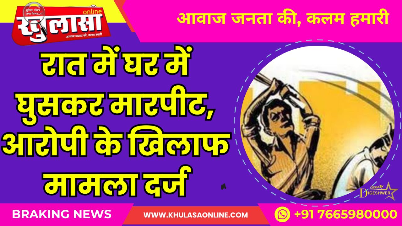 रात में घर में घुसकर मारपीट, आरोपी के खिलाफ मामला दर्ज