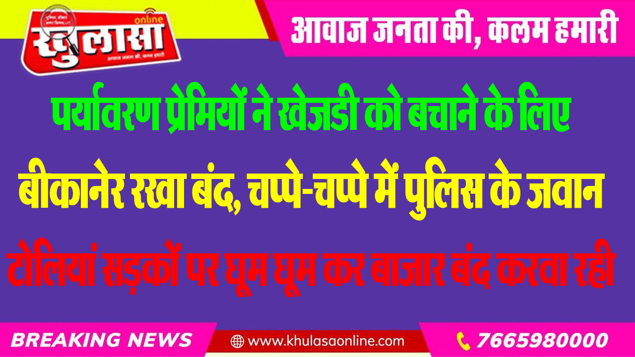 पर्यावरण प्रेमियों ने खेजडी को बचाने के लिए बीकानेर रखा बंद, चप्पे-चप्पे में पुलिस के जवान टोलियां सडक़ों पर घूम घूम कर बाजार बंद करवा रही