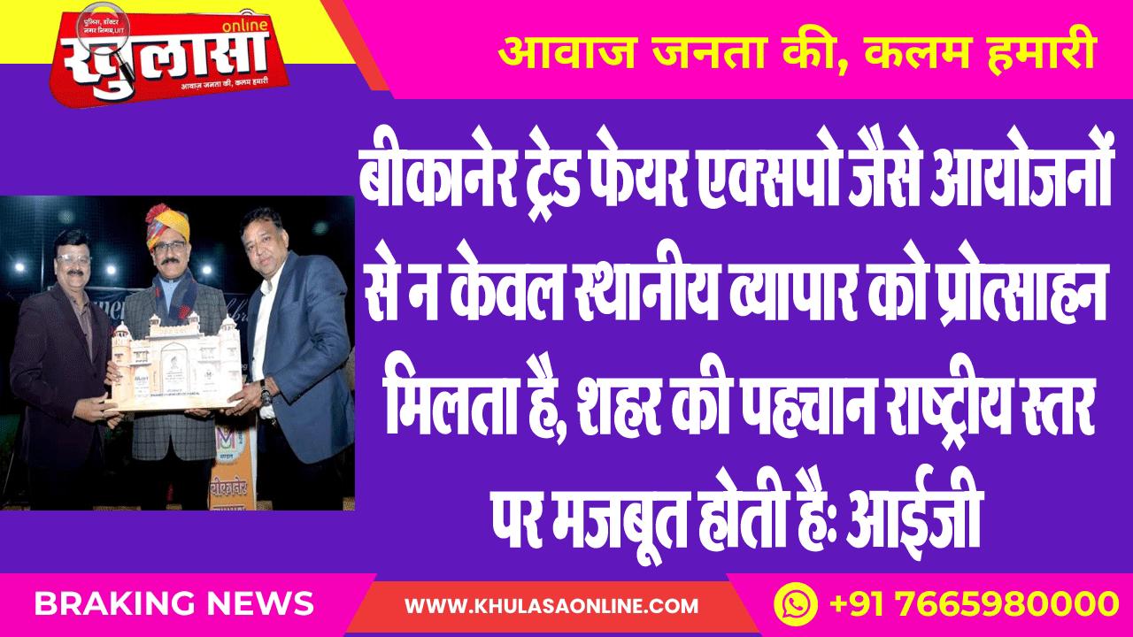 बीकानेर ट्रेड फेयर एक्सपो जैसे आयोजनों से न केवल स्थानीय व्यापार को प्रोत्साहन मिलता है, शहर की पहचान राष्ट्रीय स्तर पर मजबूत होती है: आईजी