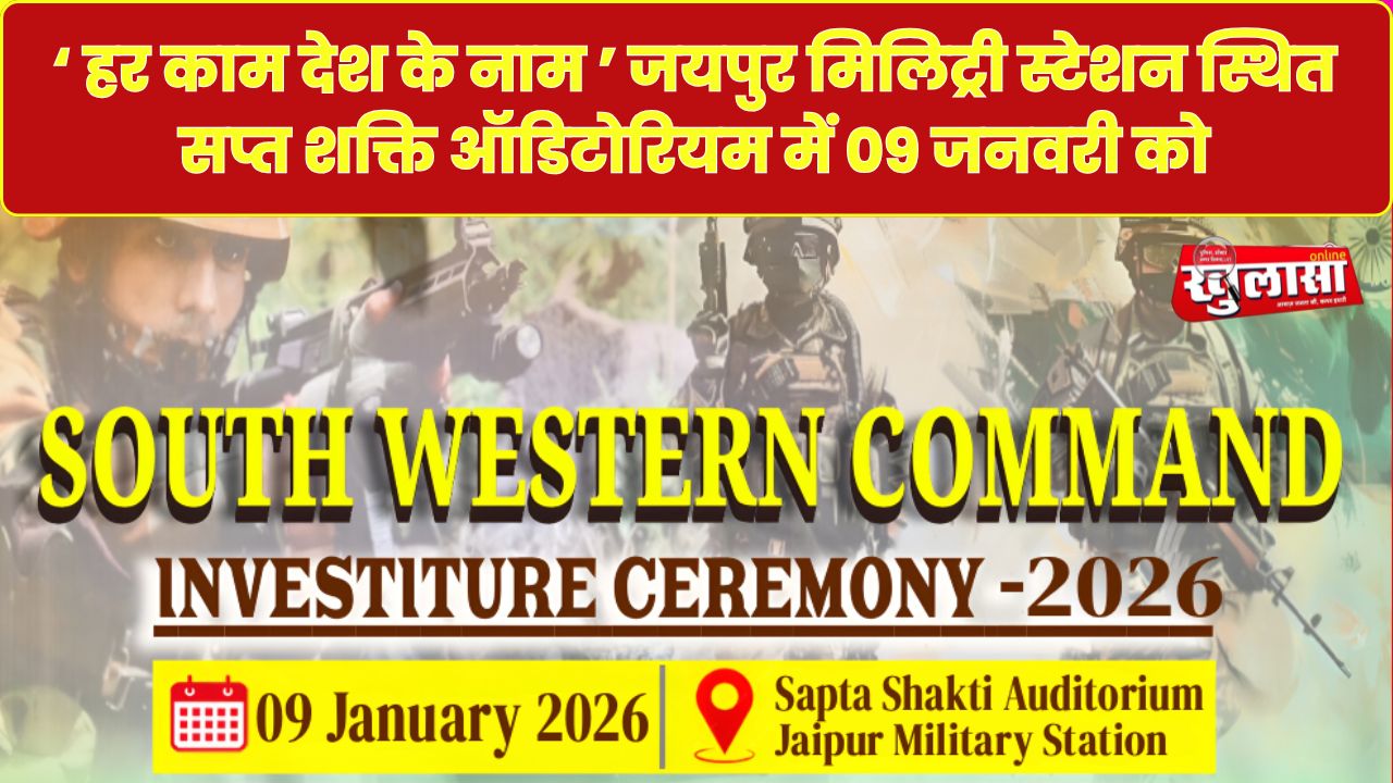 खुलासा न्यूज़। राष्ट्र की सेवा में अधिकारियों, जूनियर कमीशंड अधिकारियों एवं सैनिकों द्वारा प्रदर्शित अदम्य साहस, विशिष्ट कर्तव्यनिष्ठा एवं उत्कृष्ट सेवा को सम्मानित करने हेतु सप्त शक्ति कमान अलंकरण समारोह का आयोजन 09 जनवरी 2026 को जयपुर मिलिट्री स्टेशन स्थित सप्त शक्ति ऑडिटोरियम में किया जाएगा। इस समारोह की अध्यक्षता लेफ्टिनेंट जनरल मनजिंदर सिंह, आर्मी कमांडर, सप्त शक्ति कमान द्वारा की जाएगी।