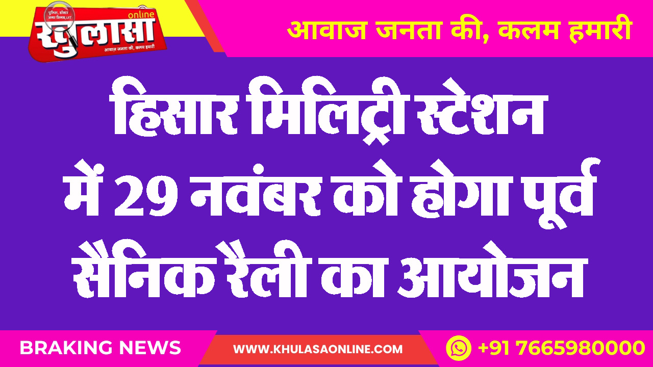 हिसार मिलिट्री स्टेशन में 29 नवंबर को होगा पूर्व सैनिक रैली का आयोजन