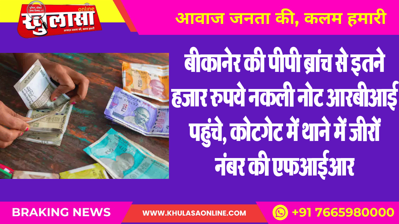 बीकानेर की पीपी ब्रांच से इतने हजार रुपये नकली नोट आरबीआई पहुंचे, कोटगेट में थाने में जीरों नंबर की एफआईआर