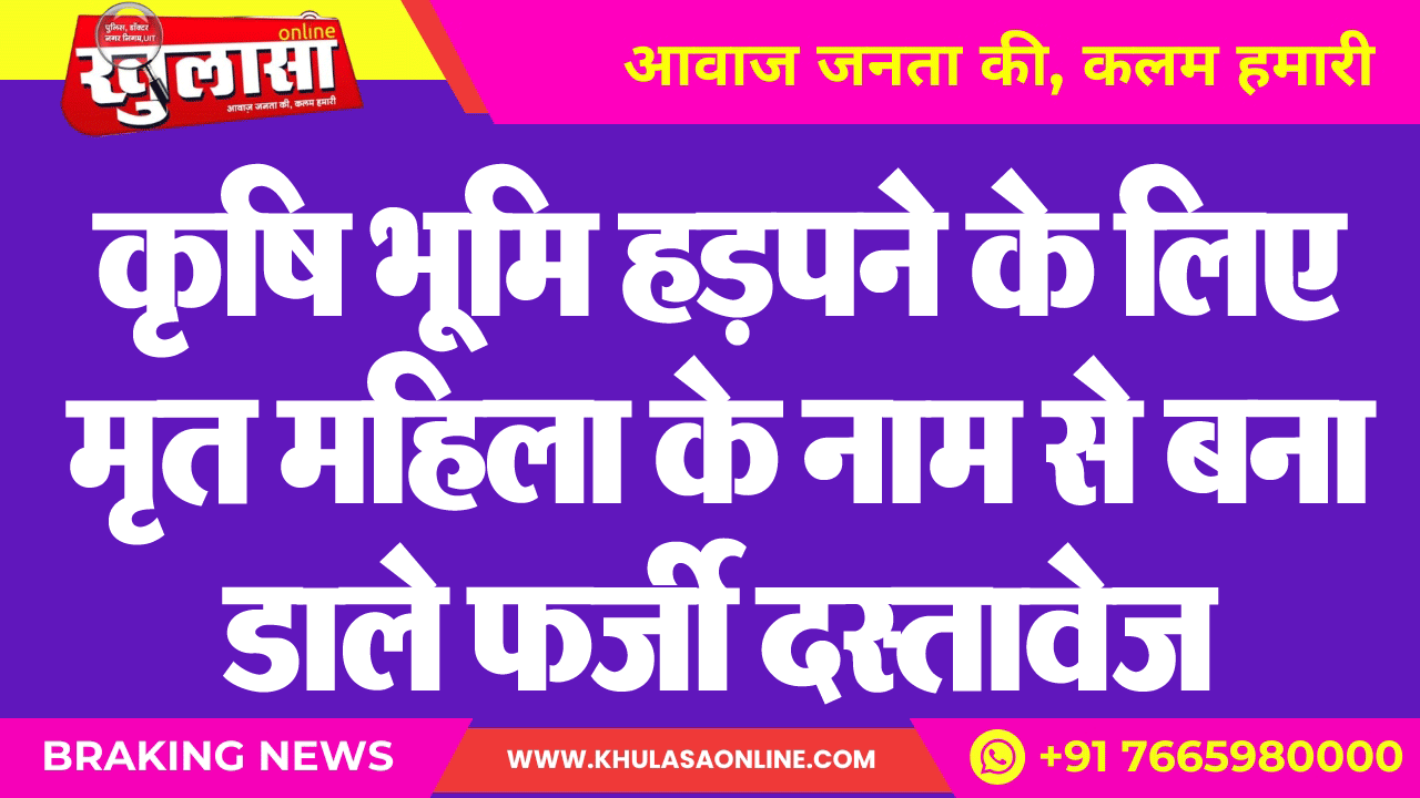 कृषि भूमि हड़पने के लिए मृत महिला के नाम से बना डाले फर्जी दस्तावेज