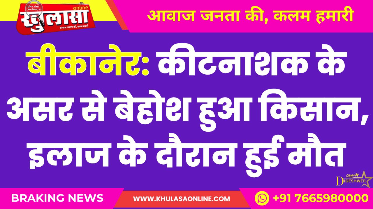 बीकानेर: कीटनाशक के असर से बेहोश हुआ किसान, इलाज के दौरान हुई मौत