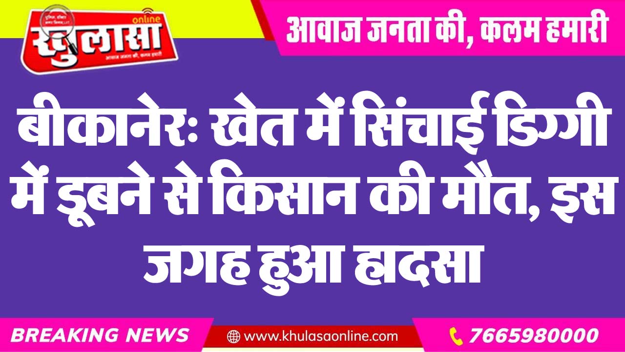 बीकानेर: खेत में सिंचाई डिग्गी में डूबने से किसान की मौत, इस जगह हुआ हादसा