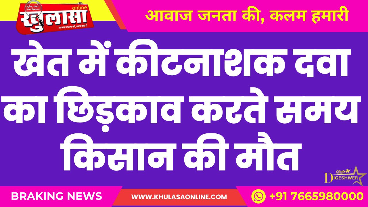 बीकानेर। नाल थाना क्षेत्र में एक दर्दनाक हादसा सामने आया है, जहां खेत में कीटनाशक दवा का छिड़काव करते समय एक किसान की मौत हो गई। मृतक की पहचान 38 वर्षीय मघाराम पुत्र नेनुराम निवासी नाल क्षेत्र के रूप में हुई है। मृतक के भाई करनाराम ने पुलिस को बताया कि मघाराम खेत में फसल पर स्प्रे कर रहा था, तभी अचानक उसकी तबीयत बिगड़ गई। जहरीला रसायन शरीर में फैलने से उसकी मौके पर ही मौत हो गई।