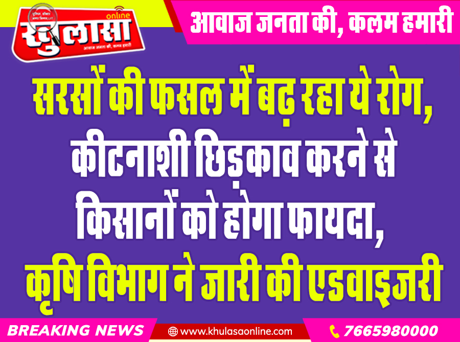 मौसम में उतार-चढाव व कम तापमान, अधिक वातावरणीय नमी की अनुकूलता के कारण सरसों फसल में चैंपा, माहू, काला तेला (एफिड) के प्रकोप की सम्भावना के मद्देनजर कृषि विभाग की ओर से एडवाइजरी जारी की गई है.