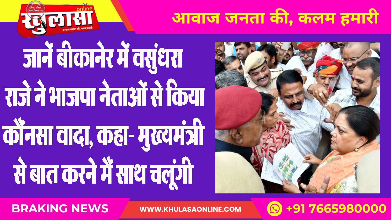 जानें बीकानेर में वसुंधरा राजे ने भाजपा नेताओं से किया कौंनसा वादा, कहा- मुख्यमंंत्री से बात करने मैं साथ चलूंगी