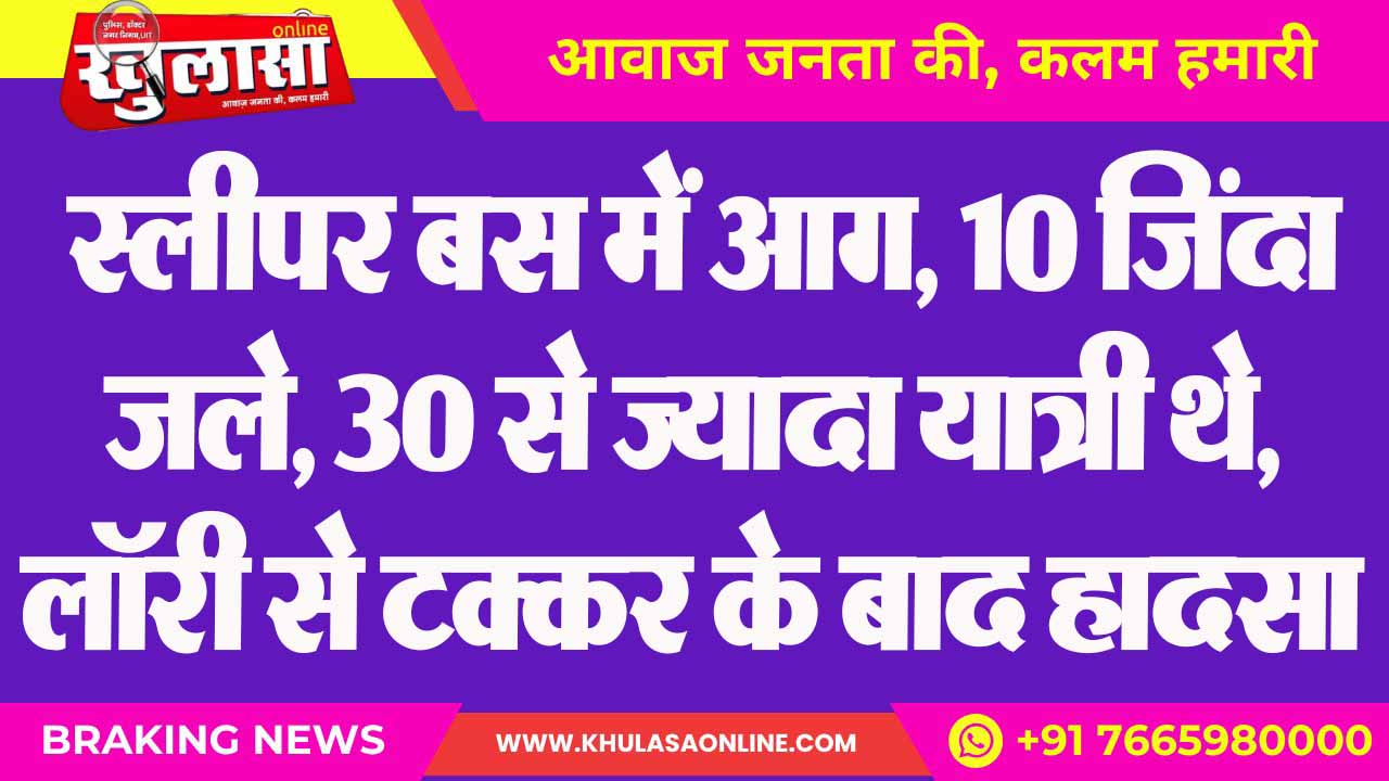 स्लीपर बस में आग, 10 जिंदा जले, 30 से ज्यादा यात्री थे, लॉरी से टक्कर के बाद हादसा