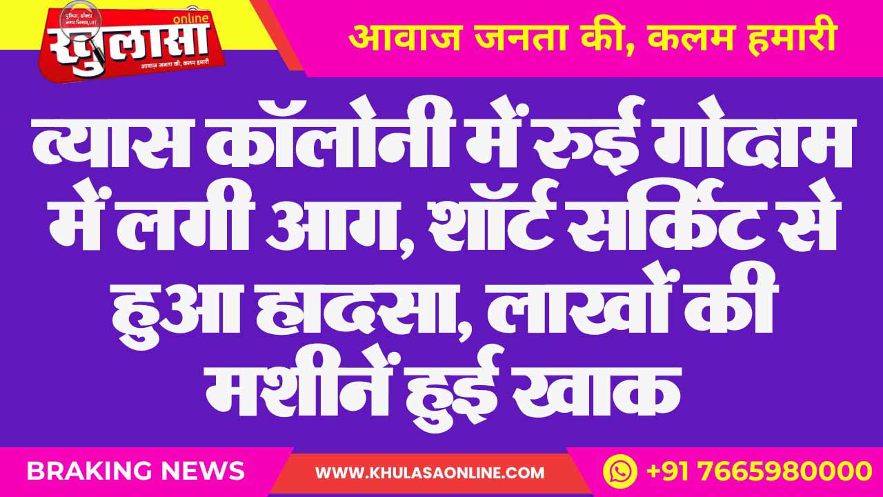 व्यास कॉलोनी में रुई गोदाम में लगी आग, शॉर्ट सर्किट से हुआ हादसा, लाखों की मशीनें हुई खाक
