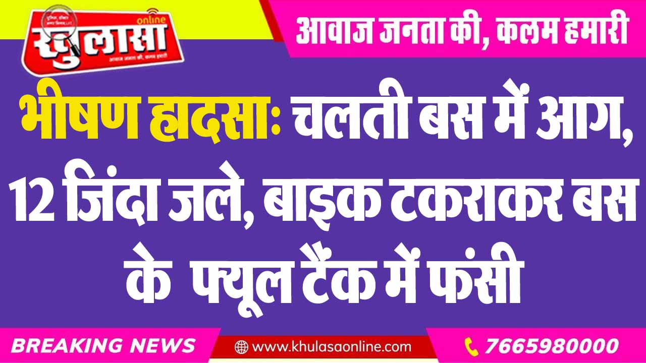 भीषण हादसा: चलती बस में आग, 12 जिंदा जले, बाइक टकराकर बस के फ्यूल टैंक में फंसी