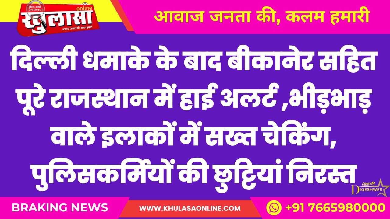 दिल्ली धमाके के बाद बीकानेर सहित पूरे राजस्थान में हाई अलर्ट — भीड़भाड़ वाले इलाकों में सख्त चेकिंग, पुलिसकर्मियों की छुट्टियां निरस्त