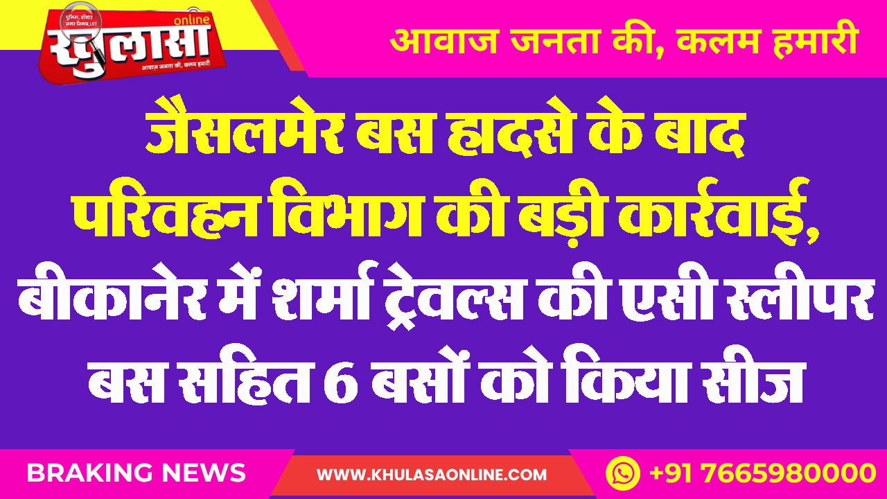 जैसलमेर बस हादसे के बाद परिवहन विभाग की बड़ी कार्रवाई, बीकानेर में शर्मा ट्रेवल्स की एसी स्लीपर बस सहित 6 बसों को किया सीज