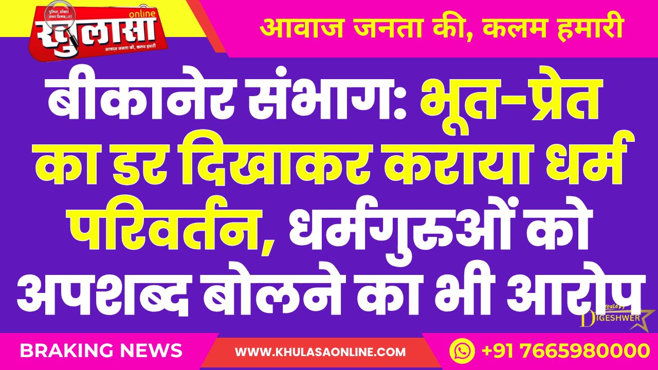 बीकानेर संभाग: भूत-प्रेत का डर दिखाकर कराया धर्म परिवर्तन, धर्मगुरुओं को अपशब्द बोलने का भी आरोप